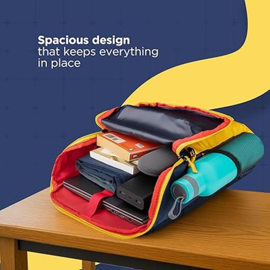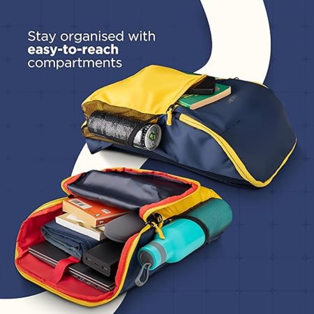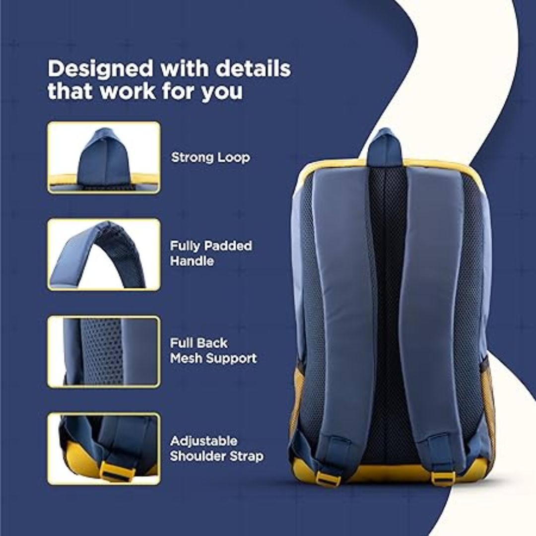 The cushioned adjustable straps ensure comfortable carrying, while the trendy yellow & navy blue design adds a fresh and modern look. Whether for college, office, or casual outings, this backpack is a stylish and practical companion.
