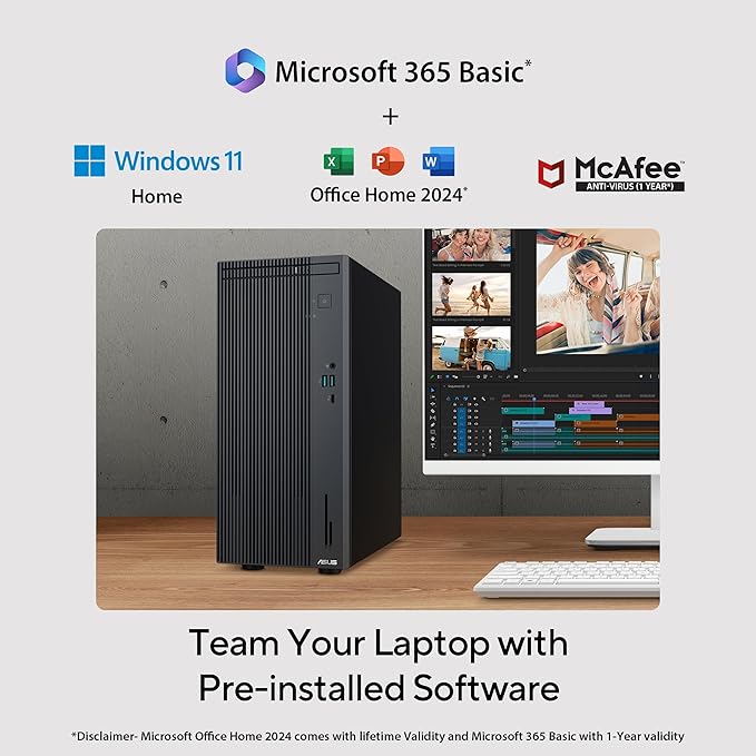 Pre-installed with Windows 11 Home, Office Home 2024, and Microsoft 365 Basic (1 Year), it’s ready to perform out of the box. The compact gray chassis saves desk space without compromising connectivity, featuring Wi-Fi 6, Bluetooth 5.2, USB, HDMI, and DisplayPort options.
