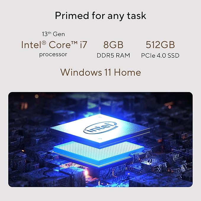 Equipped with 8 GB DDR5 RAM and a 512 GB PCIe SSD, it ensures smooth multitasking, quick boot times, and ample storage for documents and applications. The integrated Intel UHD Graphics handles video streaming and general graphics work efficiently.