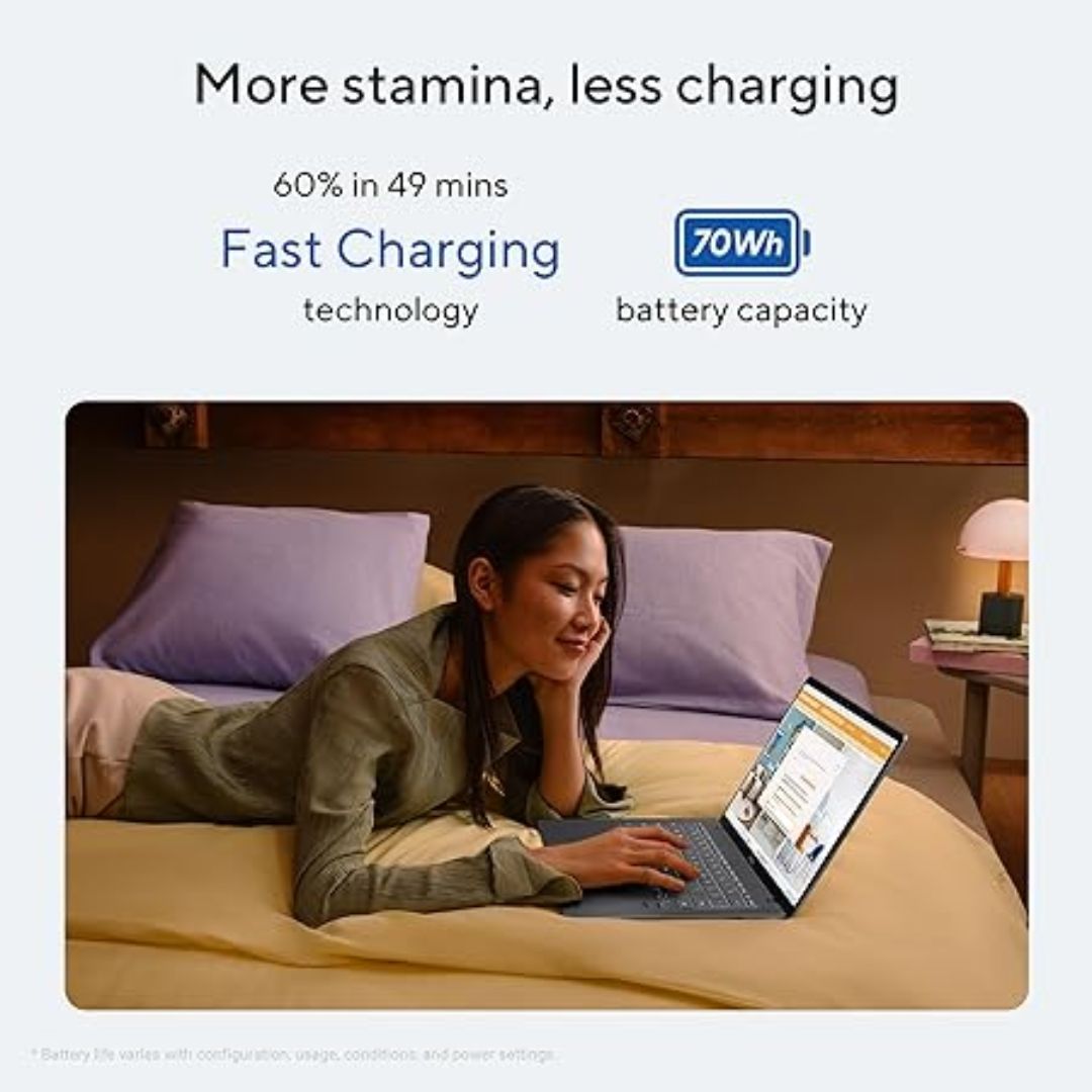 With 16GB RAM and 512GB SSD, this laptop ensures fast responsiveness and storage efficiency. The 14" FHD+ display with 16:10 aspect ratio offers a larger viewing area, making it excellent for work, study, or streaming.