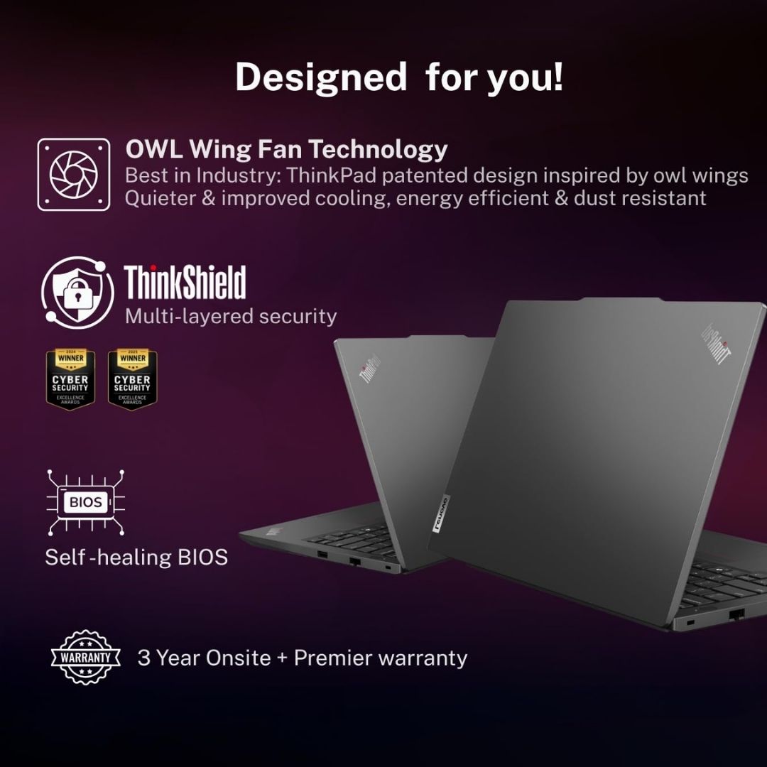 Security features such as a fingerprint reader, TPM 2.0, and backlit keyboard enhance usability, while the 3-year Premier Support ensures long-term reliability. Sleek in Black, this 1.42 kg ThinkPad E14 is ideal for business and professional environments.