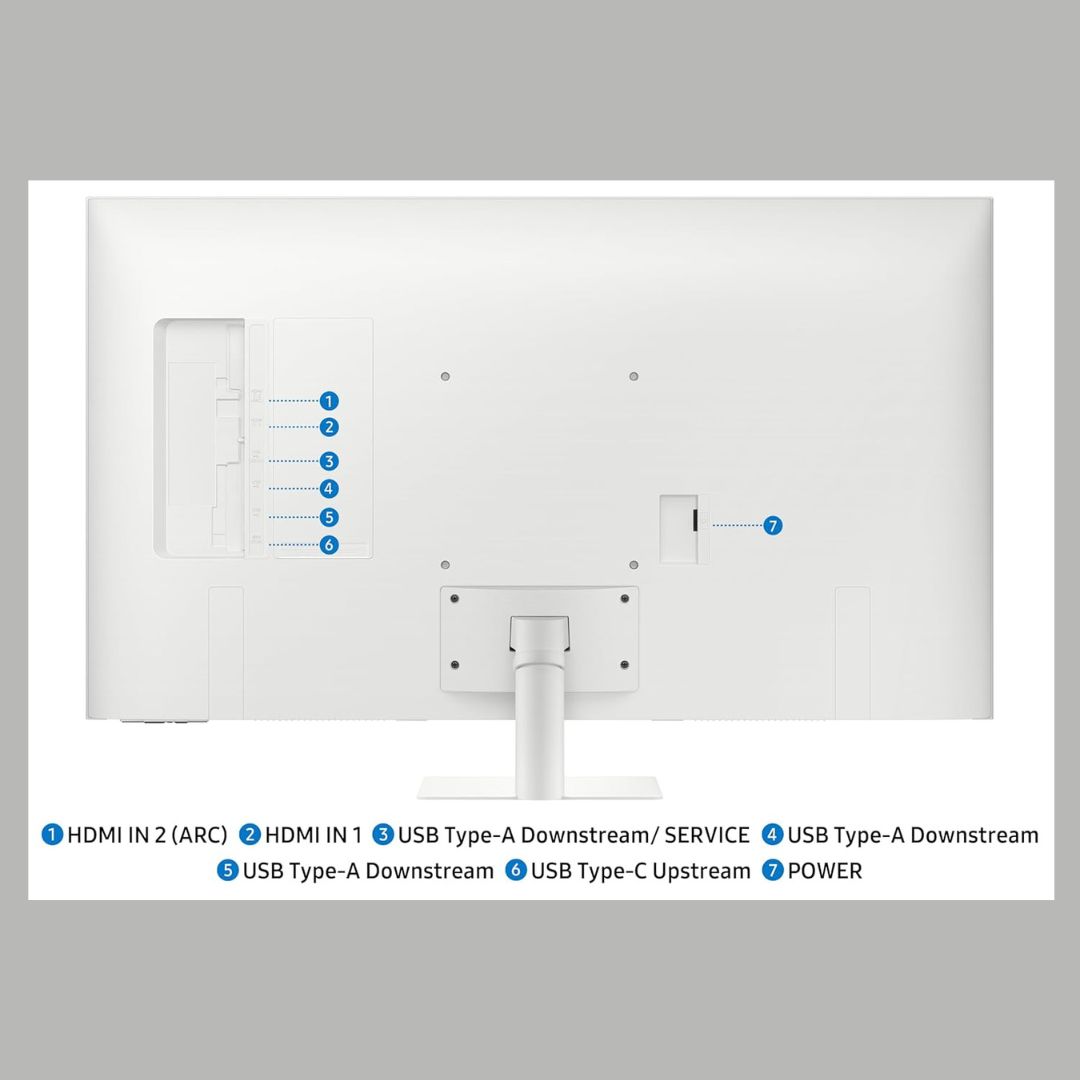 For gamers, the Gaming Bar offers quick access to essential settings, while built-in speakers and an included remote control enhance everyday usability. Finished in a clean white design, the Samsung M7 Vision AI Smart Monitor blends performance, intelligence, and style into one versatile display.