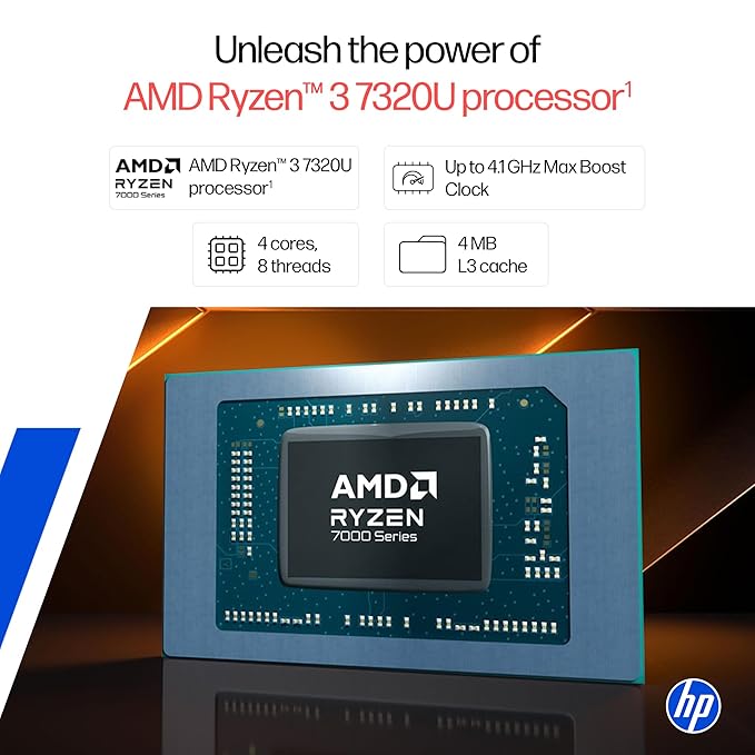 Powerful AMD Ryzen 3 7320U Processor – Efficient performance for daily tasks and multitasking.