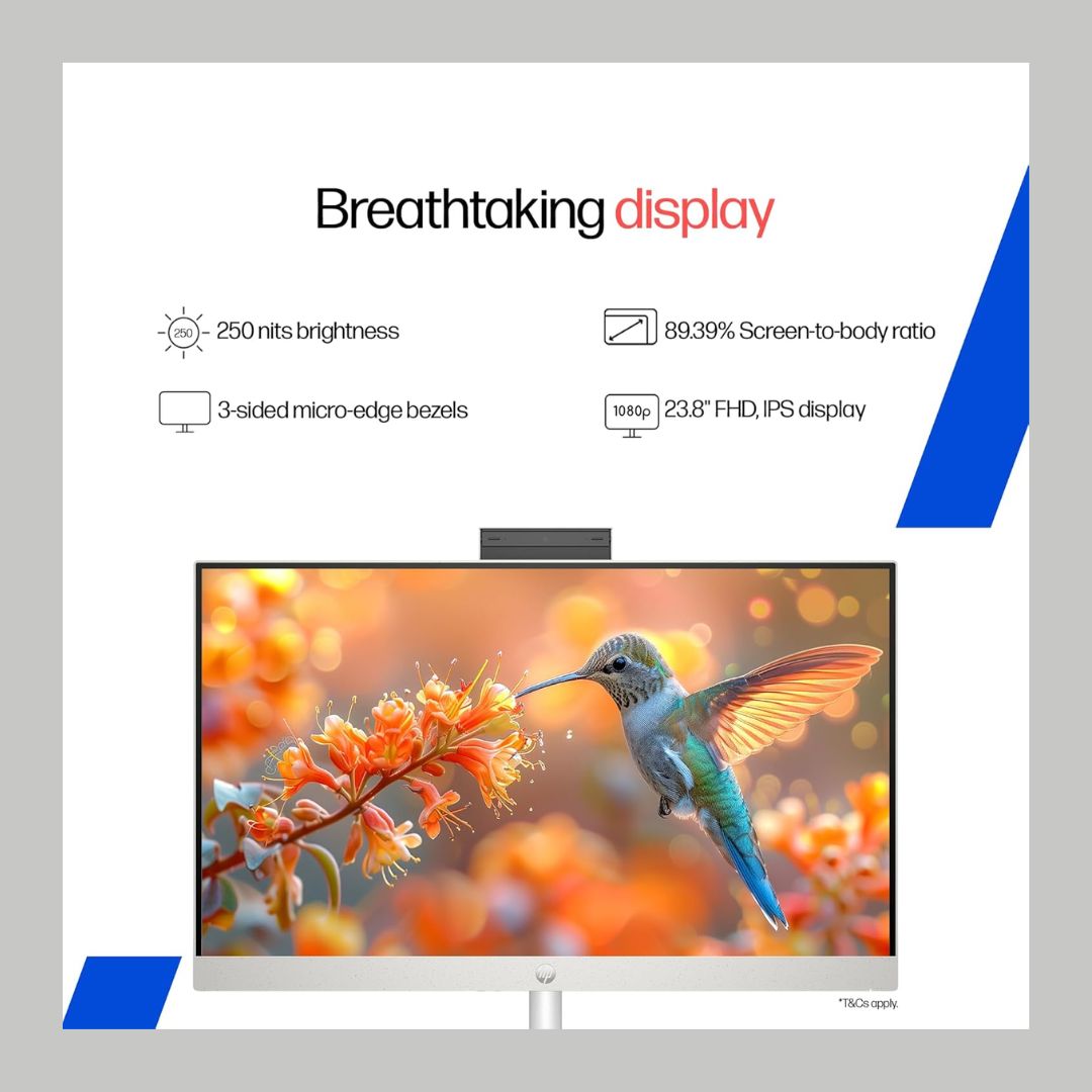 Enjoy crisp visuals on the 23.8-inch Full HD IPS display, featuring three-sided micro-edge bezels and an anti-glare coating to reduce eye strain. Whether you’re working from home, studying, streaming, or collaborating online, the FHD camera and Windows 11 Home provide a seamless and modern computing experience.
