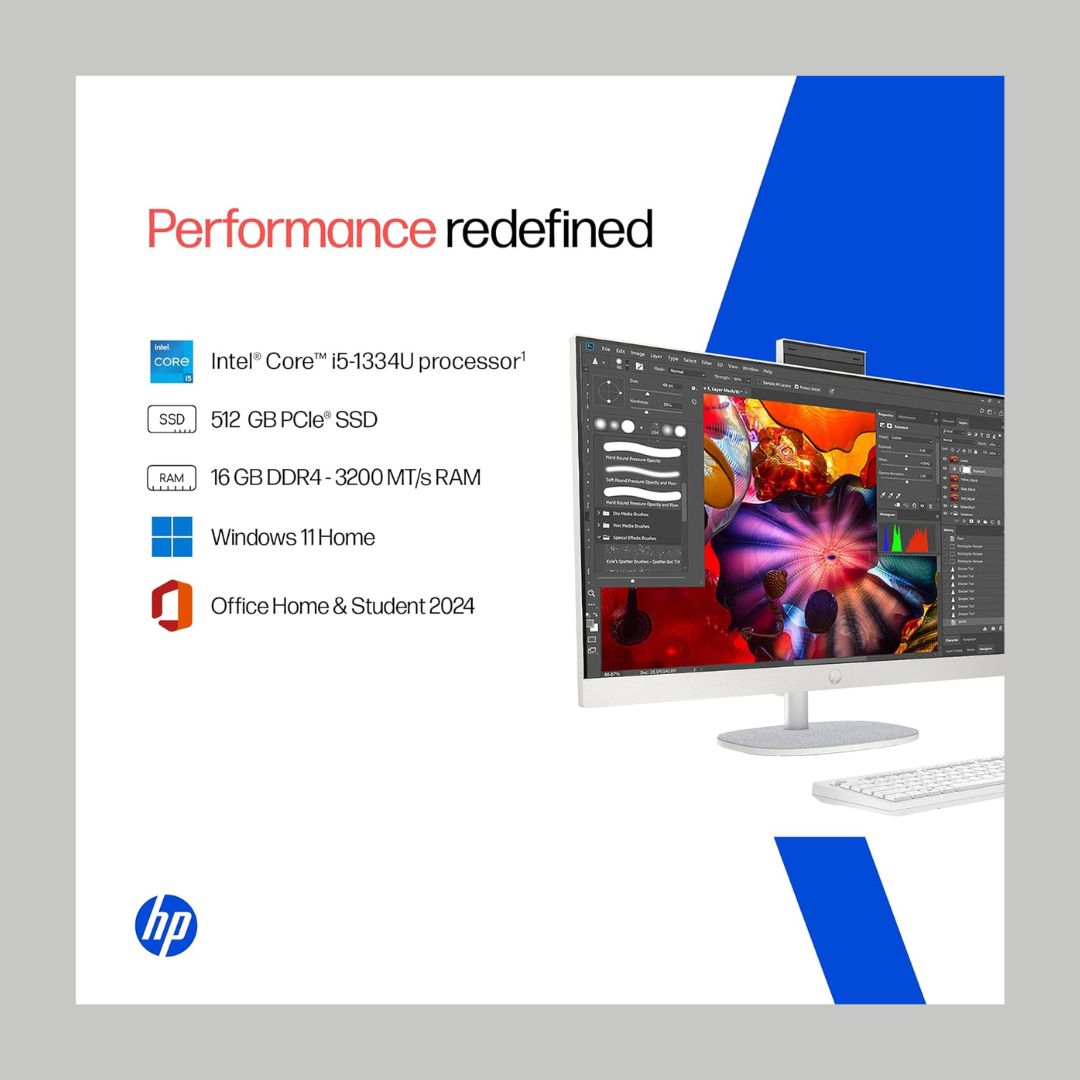 The HP All-in-One 24-cr0486in Desktop combines style, performance, and productivity in a sleek, integrated package. Powered by a 13th Gen Intel Core i5-1334U processor paired with 16GB of DDR4 memory and a 512GB SSD, this AIO delivers responsive performance for everyday computing, productivity, media, and multitasking.