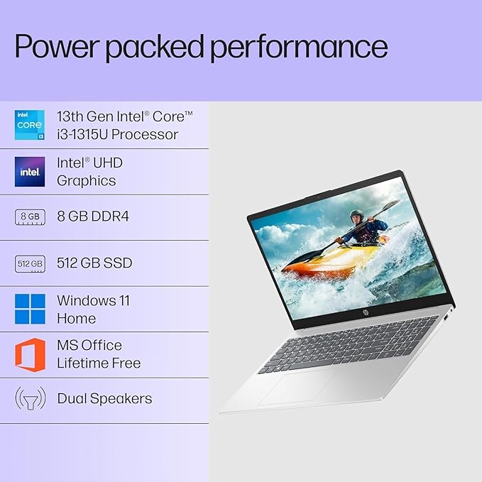 The HP 15 Consumer Series Laptop (15-FD0573TU) is designed for users who need reliable performance for everyday tasks, work, and learning. Powered by the 13th Gen Intel® Core™ i3-1315U processor, it delivers efficient performance for browsing, office work, online classes, and entertainment.