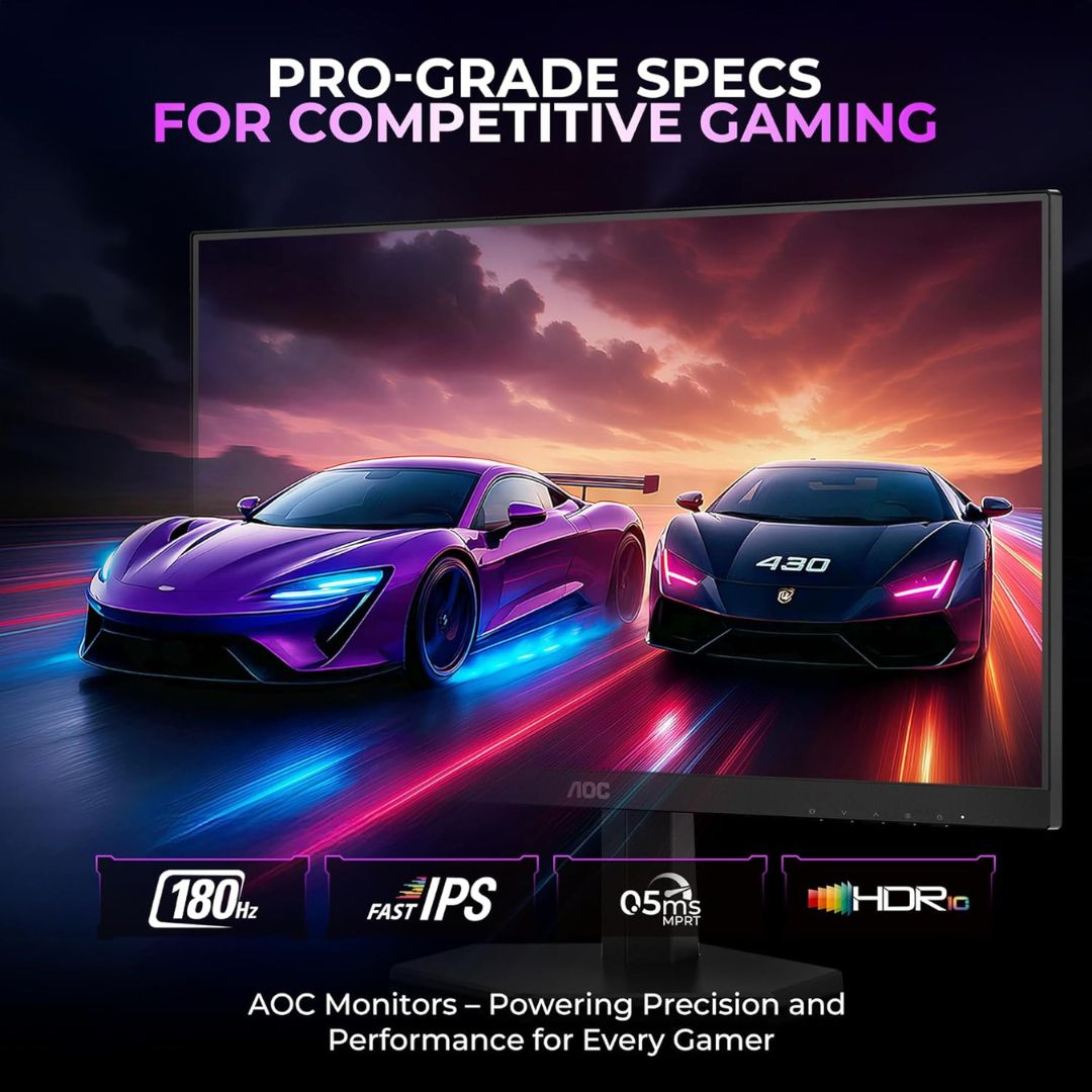 With a 180Hz refresh rate and 0.5ms response time, this monitor ensures ultra-smooth gameplay with minimal input lag and motion blur—ideal for fast-paced esports titles. Adaptive Sync technology eliminates screen tearing and stuttering, while HDR10 support enhances visual depth and realism.