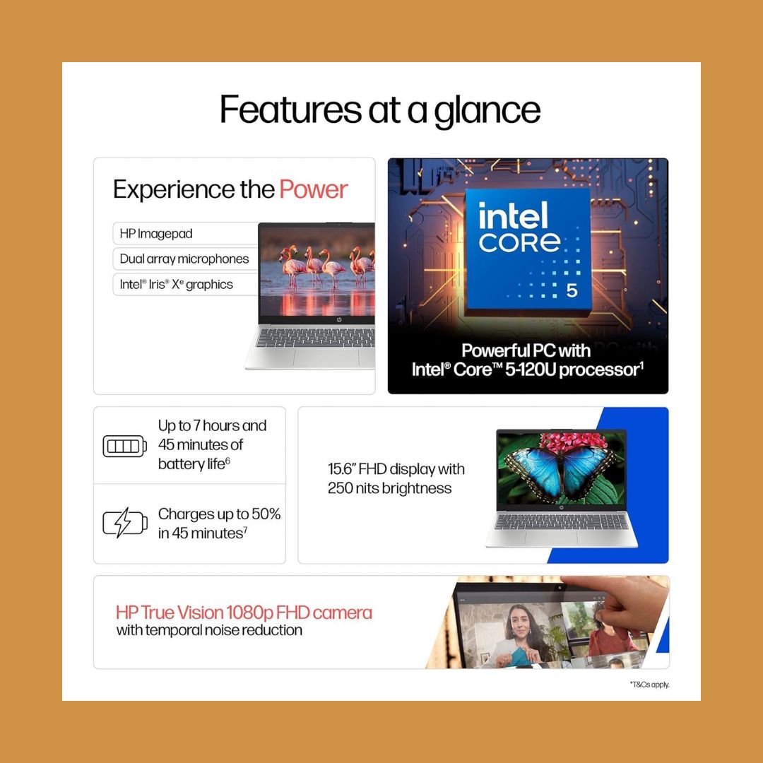 The HP 15 Laptop (fd0651TU) is built for productivity, performance, and everyday reliability. Powered by the Intel® Core™ 5-120U processor, it delivers efficient performance for office work, online meetings, and daily multitasking.