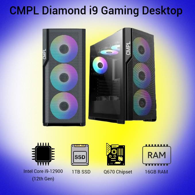 Ample Storage: The CMPL Diamond i9 features a dual-storage setup with a 1024GB SSD. The large provides ample space for all your games, files, and multimedia, while the SSD offers fast boot times and quick access to your most-used applications and data. This combination ensures you have both the capacity and speed you need for optimal performance.