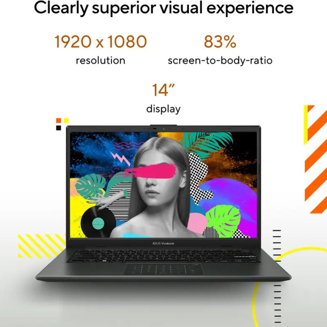 Vivobook Go 14 has beautifully clear visuals with its NanoEdge slim-bezel display that provides more screen space for multitasking and immersive viewing.