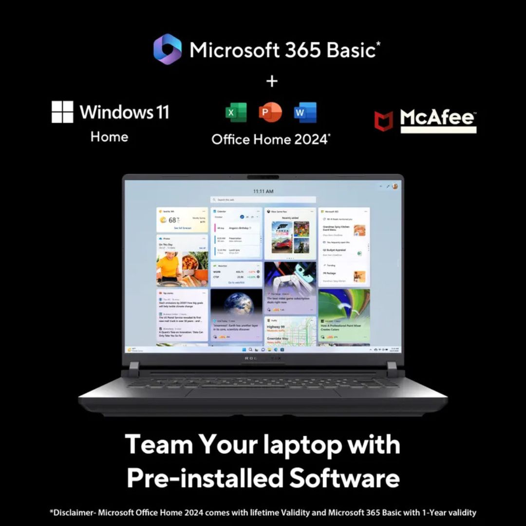 With Windows 11 Home, Office Home 2024, M365 Basic (1 Year), and McAfee (1 Year), the Strix G16 is fully equipped for both productivity and play — making it a powerful, all-around machine for modern gamers.