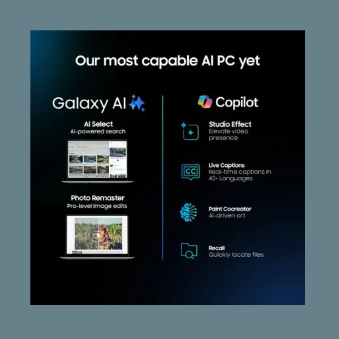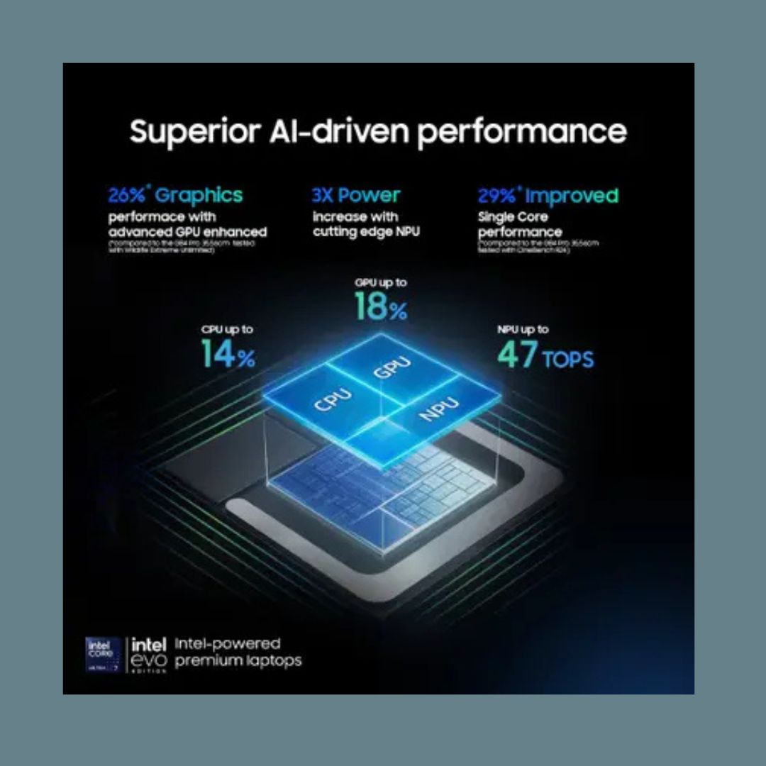The Samsung Galaxy Book 5 360 NP750QHA-LG3IN is a premium 2-in-1 convertible laptop built for professionals and creators who demand power, flexibility, and visual excellence. Powered by the Intel Core Ultra 7 256V (Ultra 2nd Gen) processor, it delivers advanced AI-driven performance and efficient multitasking. With 16GB LPDDR5X RAM and a massive 1TB SSD, this laptop ensures ultra-fast responsiveness and ample storage for demanding workloads.