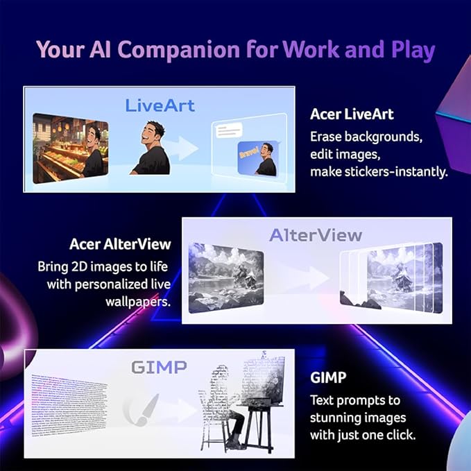 Ready for the ever-evolving possibilities of AI, Swift Go 14 integrates Intel’s new dedicated AI engine Intel AI Boost with Acer’s own AI solutions, for more intuitive and enjoyable AI experiences.