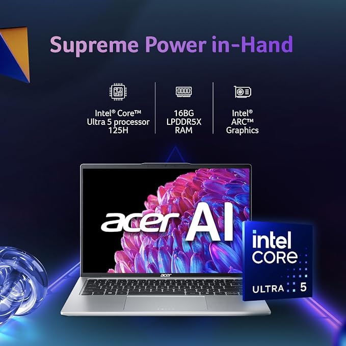 Featuring the next-gen Intel Core Ultra Processor, with built-in Intel Arc graphics, Swift Go 14 now boasts an up to 47% performance boost with improved power efficiency. Empowering you to effortlessly breeze through the most demanding of tasks.