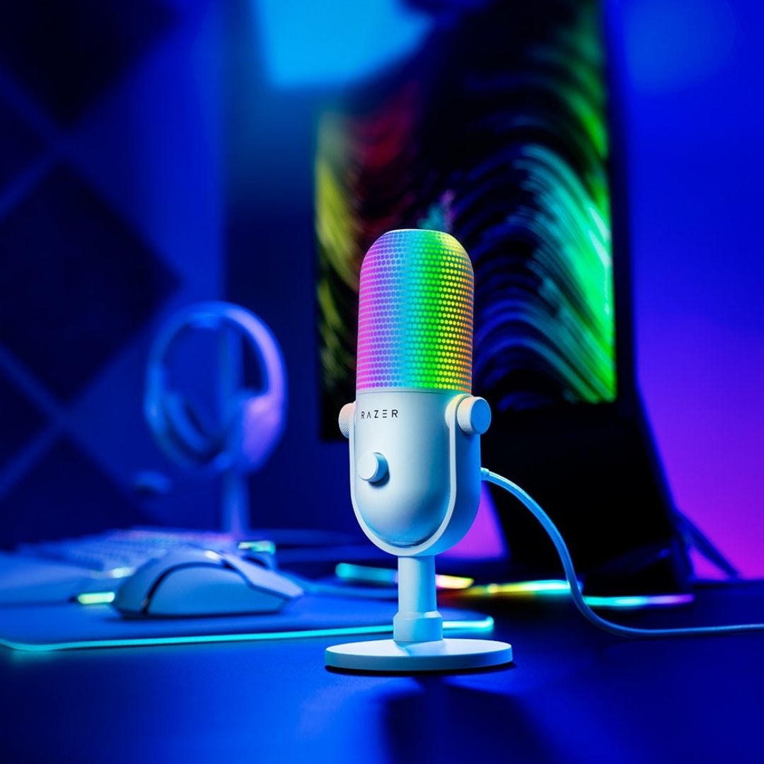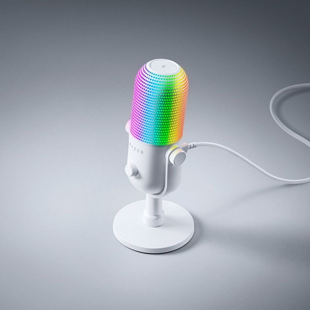The Razer Seiren V3 Chroma – White Edition is a premium RGB USB microphone engineered for streamers, gamers, and creators who demand studio-grade audio quality. Its supercardioid condenser capsule captures your voice with superior clarity while minimizing background noise. With tap-to-mute control, a tiltable stand with shock absorption, and eye-catching reactive RGB lighting, this microphone elevates the look and sound of any setup. Enjoy effortless plug-and-play performance with 96kHz/24-bit recording quality, making it ideal for professional-level streaming, chatting, and content creation.