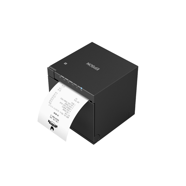 The TM-m30III thermal receipt printer offers sleek design and reliable performance in a compact package. With IPX2 water resistance and flexible front or top paper loading options, it fits well in tight spaces.