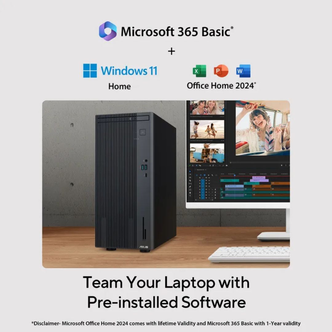 The Air Cooler maintains optimal system temperature, while the Intel UHD integrated graphics handles everyday visual tasks efficiently. Preloaded with Windows 11 Home, Office Home 2024, and a 1-year Microsoft 365 Basic subscription, the ASUS V500 is ready for both professional and personal use. Its Mini Tower design combines a sleek aesthetic with space-saving convenience. With a 1-year warranty, this PC is a reliable and practical choice for home and office setups.