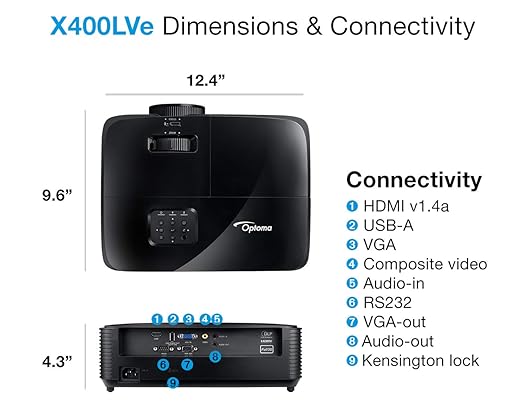 The Optoma X400LVe XGA Professional HDMI Projector is designed for impactful presentations in classrooms, meeting rooms, and training environments. With its 4000 lumens brightness, it produces sharp, vivid images even in ambient light conditions. The native XGA resolution is ideal for displaying documents, slides, and data clearly, while HDMI and VGA inputs ensure compatibility with a wide range of devices. The built-in 10W speaker delivers clear audio, eliminating the need for external sound equipment for smaller spaces. Compact, portable, and energy-efficient, the Optoma X400LVe is a dependable choice for professional projection needs.