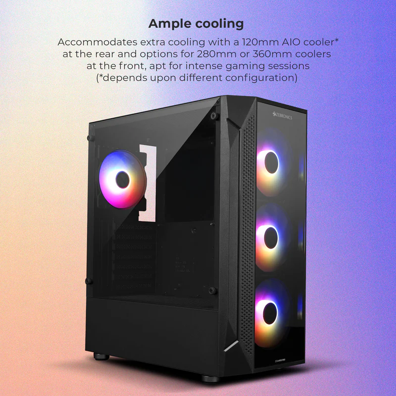 It comes equipped with 4 pre-installed ARGB fans that deliver vibrant lighting effects while ensuring efficient cooling during intense gaming sessions. The tempered glass side panel not only adds durability but also lets you showcase your premium components in style.