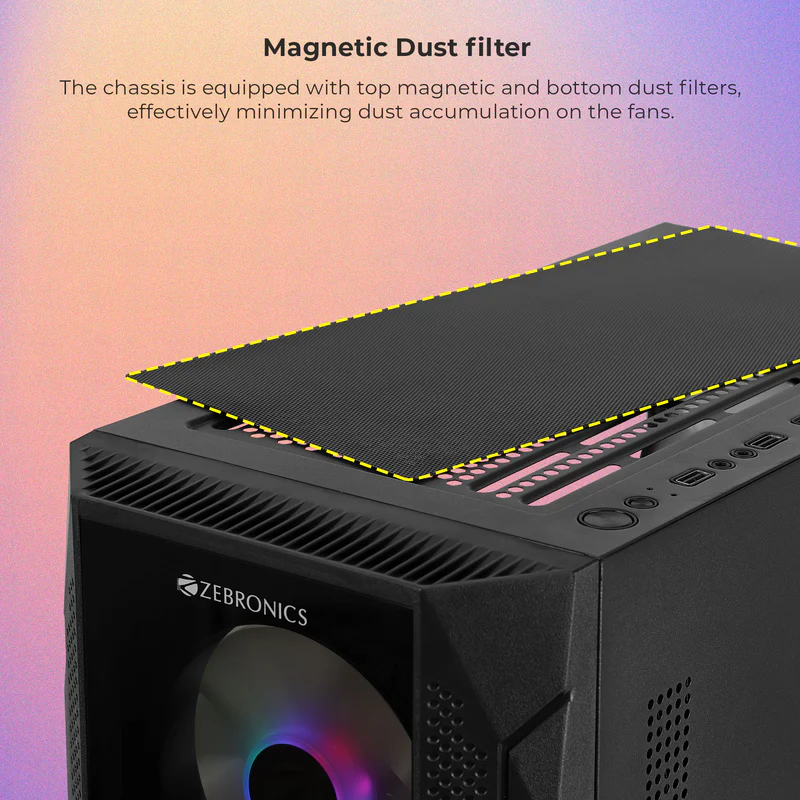 The front I/O panel includes USB 3.0, USB 2.0, audio, and mic ports, providing fast connectivity and convenience. With its sleek design, sturdy build quality, and premium features, the Zebronics Apex Pro is a perfect choice for gamers, creators, and professionals who want a future-ready gaming cabinet.