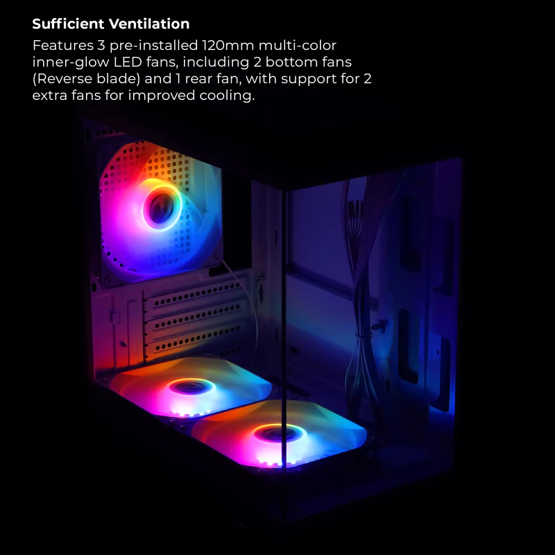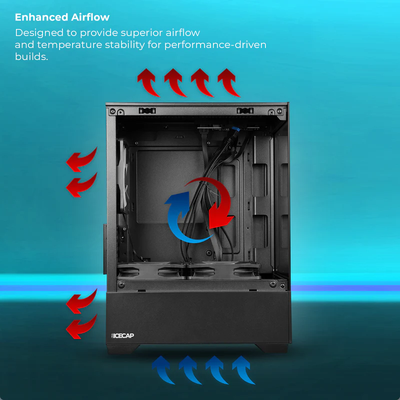 Built to support ATX, Micro-ATX, and Mini-ITX motherboards, the ZEB-ICECAP offers wide compatibility and flexibility for all types of PC builds — from entry-level systems to high-performance rigs. Its high-airflow chassis layout ensures optimized cooling, with multiple mounting options for additional fans or liquid cooling solutions, helping maintain stable performance even during long gaming sessions.