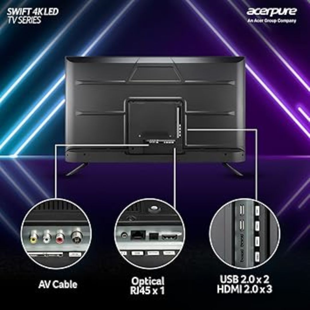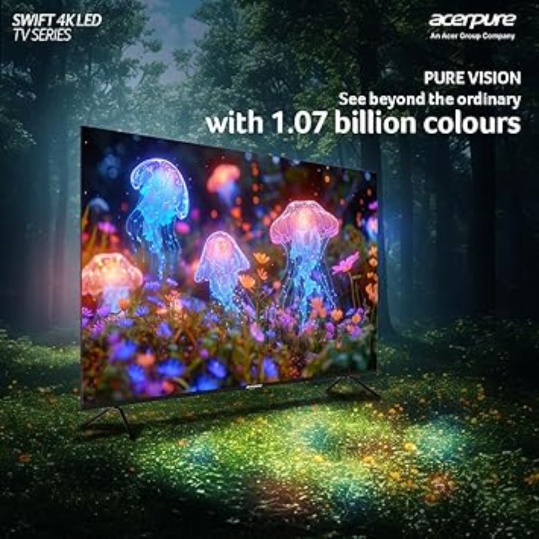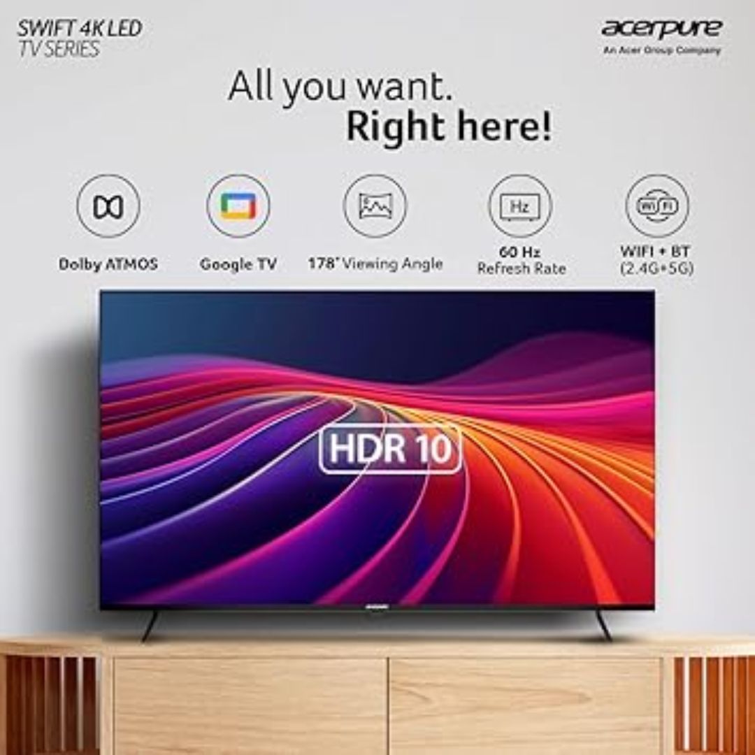 The acerpure Swift 140 cm (55-inch) UHD LED Smart Google TV (AP55UG96MST5) brings a perfect blend of style, performance, and smart entertainment. Its 4K Ultra HD LED display ensures crystal-clear visuals with lifelike detail, while Dolby Audio delivers immersive surround sound for an enhanced home theater experience.