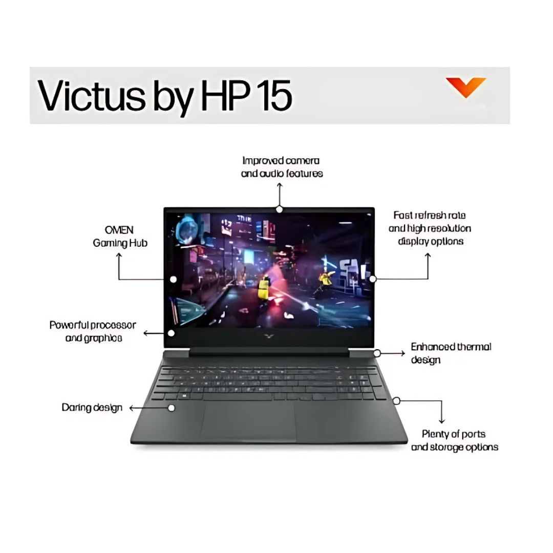 The HP Victus 15-fa2078TX is a powerful and stylish gaming laptop tailored for both serious gamers and creative professionals. At its core, the 13th-Gen Intel Core i7-13620H processor packs 10 cores and 16 threads, delivering outstanding performance across demanding multitasking and gaming.
