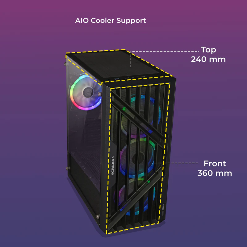 Inside, the cabinet offers spacious room for powerful GPUs, multiple storage drives (SSD + HDD), and various cooling options, including multiple fan mounts and liquid cooling support. Whether you're building a budget gaming PC or a high-end performance machine, the ZEB-Voxa gives you the flexibility you need.